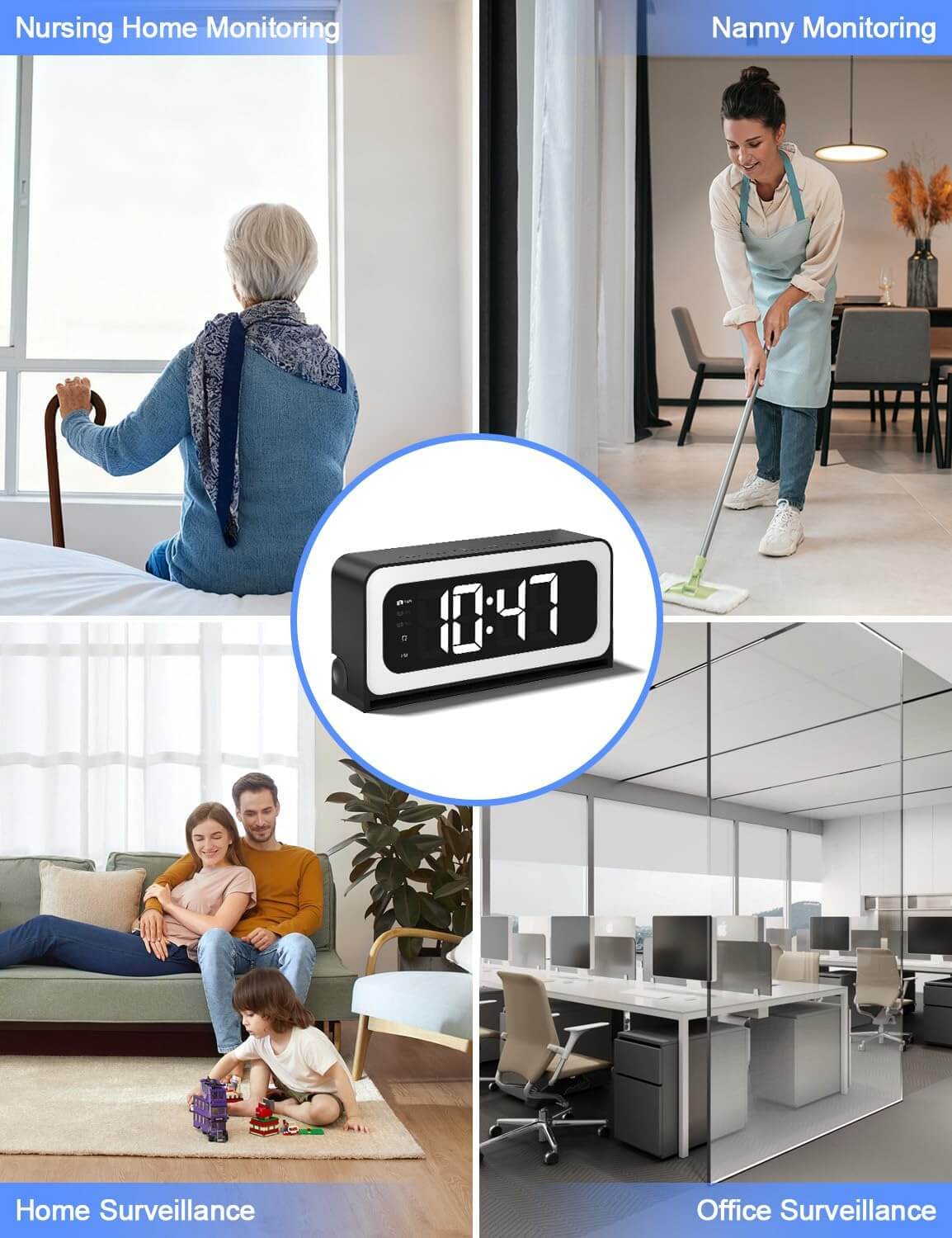 "Exactly what I needed for peace of mind. The two-way audio works great, and I love that it actually functions as a normal bedside digital clock. The motion detection alerts are super fast and get sent directly to my phone. A must-have for home security."